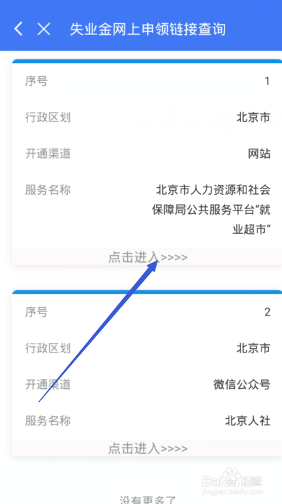 返回办事界面点击【掉业金网上申领链接查询】选项。