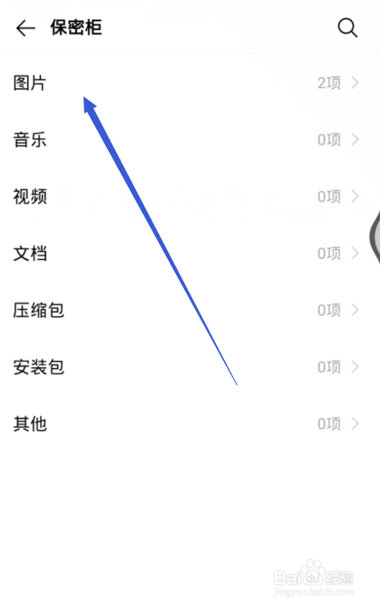 2、进入保密柜界面点击下方的【图片】选项按钮。