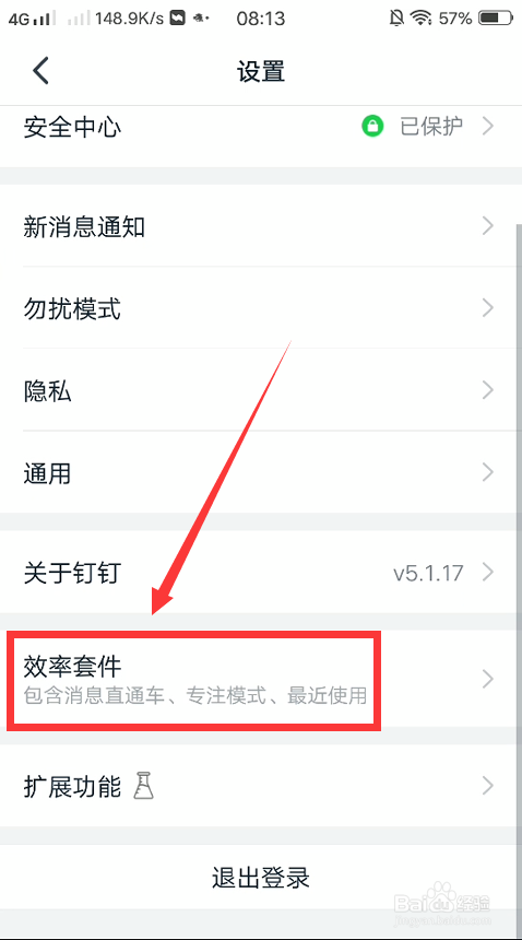 在设置界面的下方,我们需要找到“效率套件”选项,进入效率套件界面。