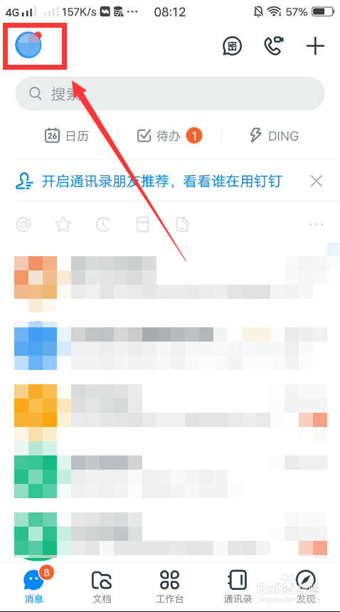 首先,我们需要打开钉钉app的本家儿界面,点击界面左上角的小我头像,进入小我菜单中。