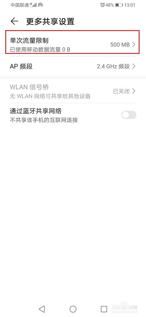 第五步进去之后,可以限制华为手机小我热点流量,按照需要设置