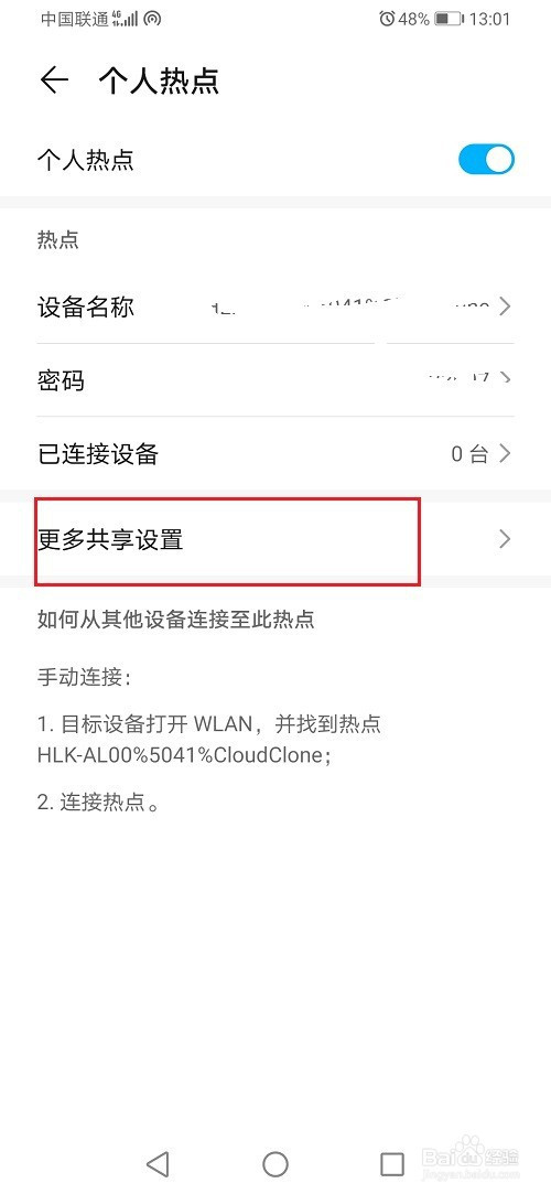 第四步进去华为手机小我热点之后,然后点击更多共享设置