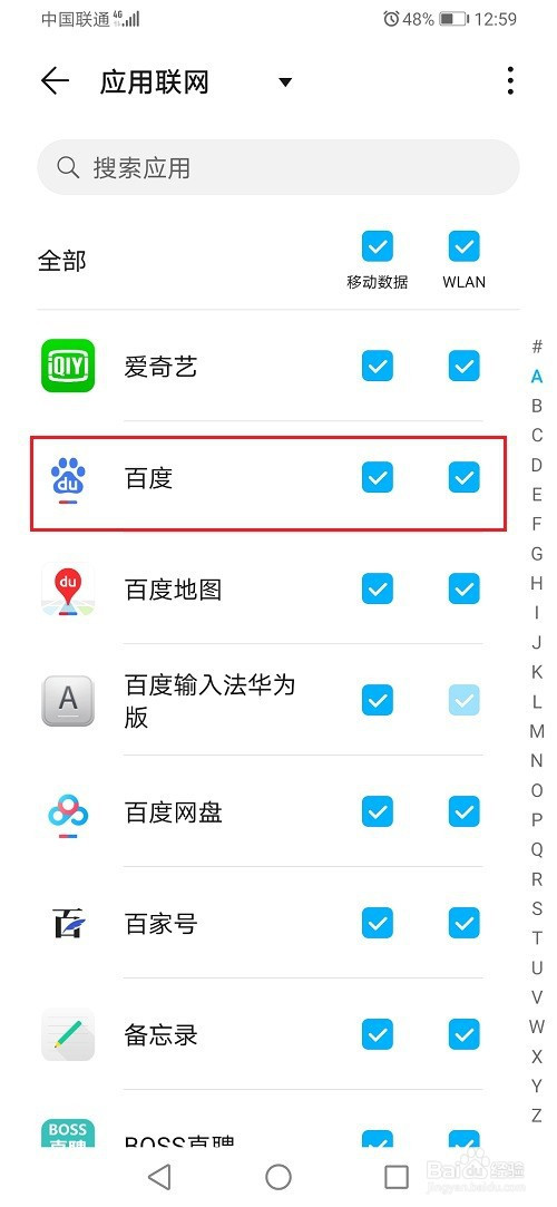 第五步这里打消百度移动数据和WLAN的勾选,就禁止联网了,按照需要利用