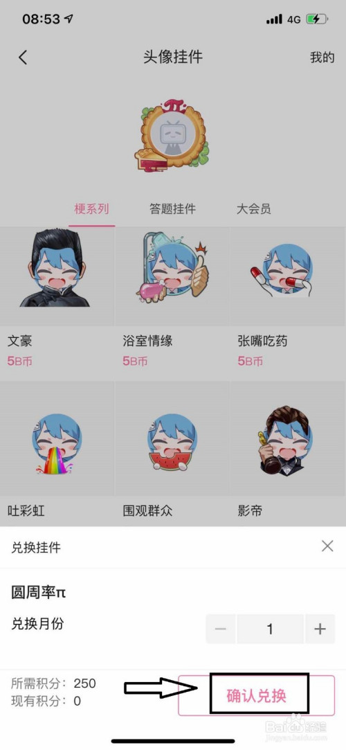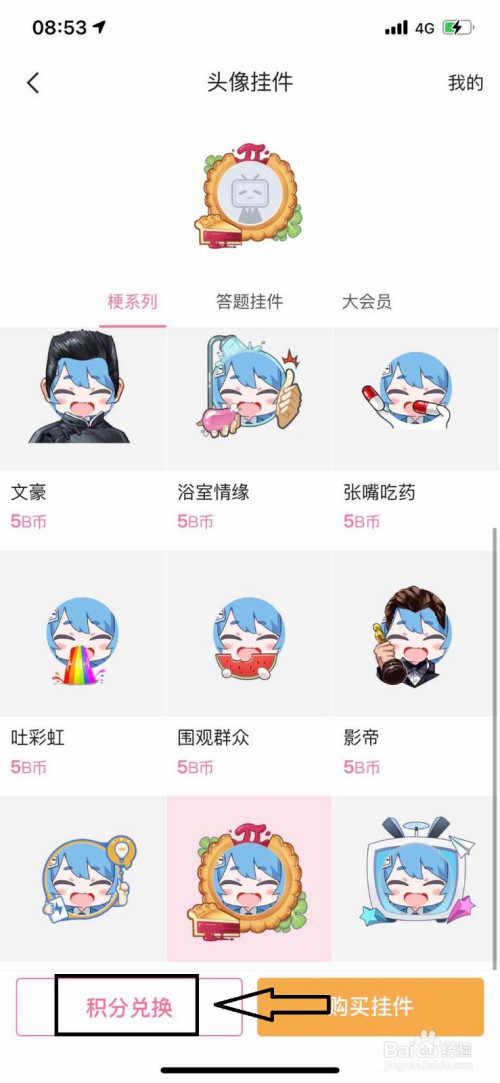 进入头像装扮的本家儿页面后,我们选中喜爱的头像,然后点击积分兑换。