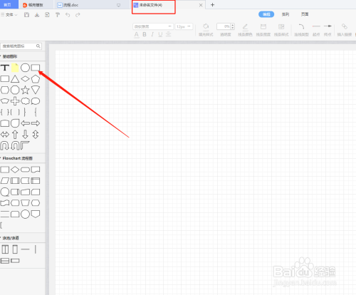 在弹出的对话框中点击“新建空白图”上的“+”号,然后在弹出来的“未定名文件”中可以看到各类流程图形,及右侧有方格网画布。