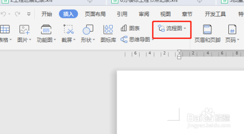 打开一个WPS,将光标放到空白处,在左上角东西栏中点击“插入”,并在插入里面找到“流程图”,点击进去。