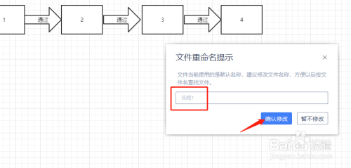 点击左上角东西栏保留按钮图标,然后将“未定名文件”封闭失落,在弹出的“文件重定名”对话框中对刚画的流程图进行重定名,点击“确认点窜”。