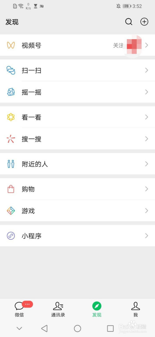 8.返回“发现”界面,发现已经没有了朋友圈进口