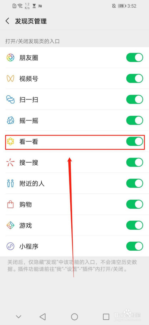 返回“发现”界面,发现已经没有了看一看进口,如图
