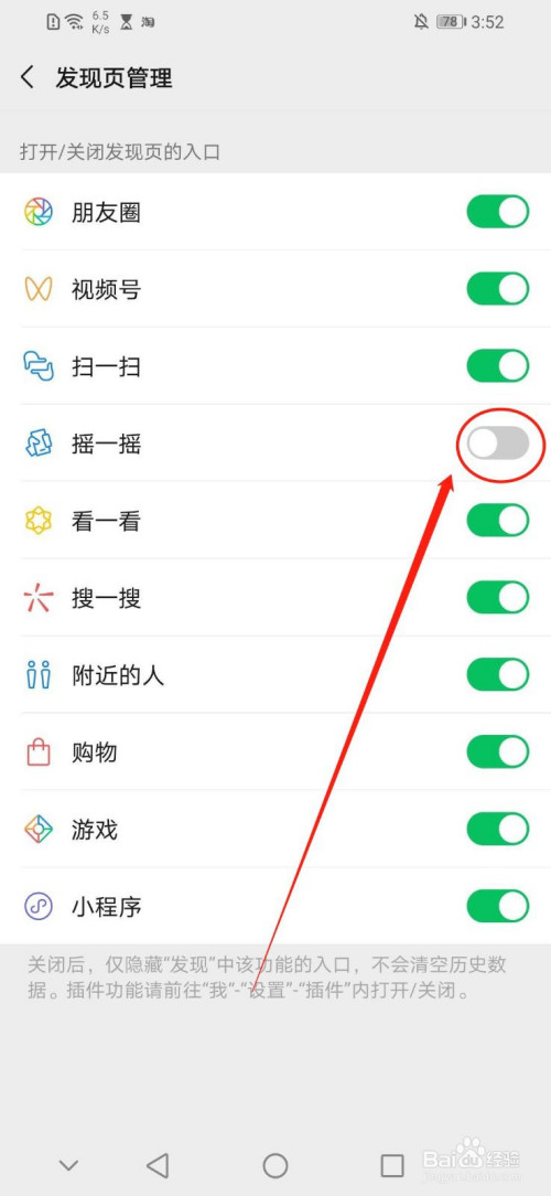 返回“发现”界面,发现已经没有了摇一摇进口,如图