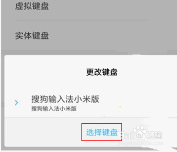 在弹出更改键盘对话框,点击选择键盘进入。