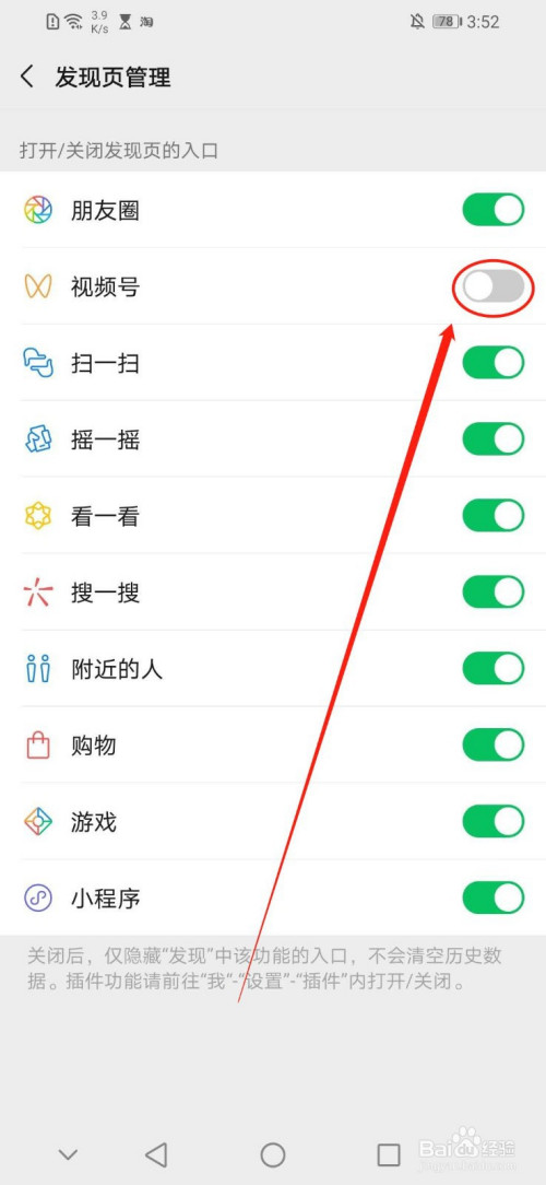 返回“发现”界面,发现已经没有了视频号进口,如图