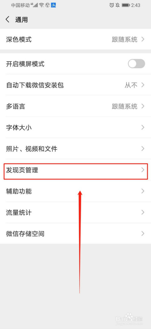 进入“通用”界面后,点击“通用”界面第七行的“发现页办理”,如图