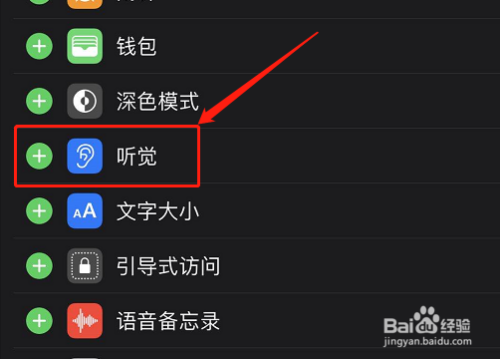 然后,上划打开节制中间,打开听觉功能即可。如图: