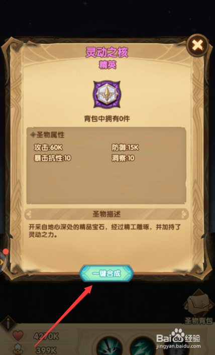 点击一键合当作选项按钮搭配全数品级圣物。