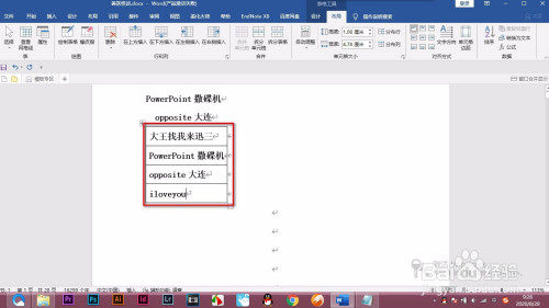 2.先按照文字插入一列表格。
