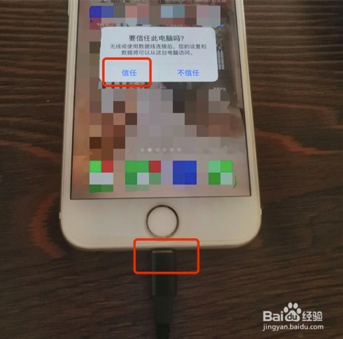 苹果原版USB数据线的另一头数据口接iPhone苹果手机,就会弹出一个窗口,如图所示: