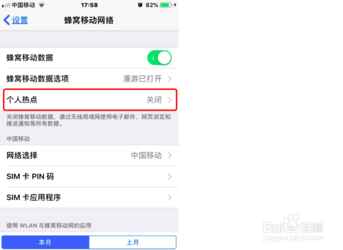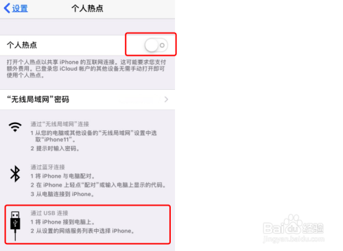 轻点“小我热点”,开关,如图所示:
