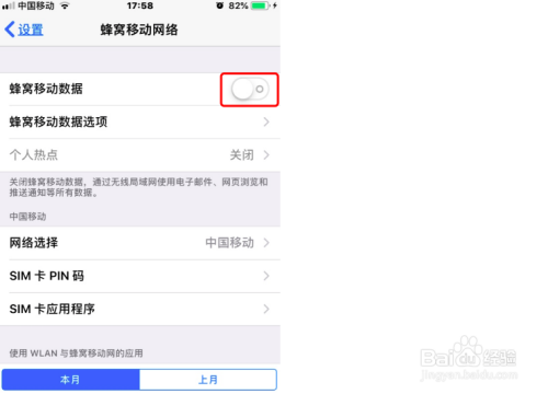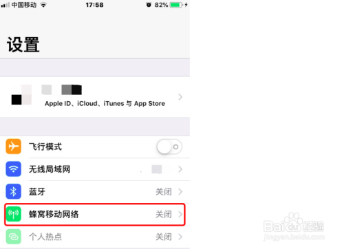 轻点“蜂窝移动数据”,开关,如图所示: