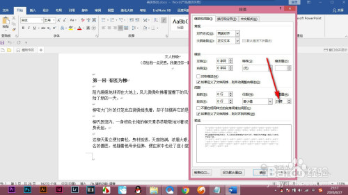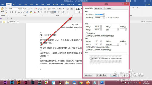 1.首先我们打开文档。打开段落对话框,快捷键是alt加O加P。