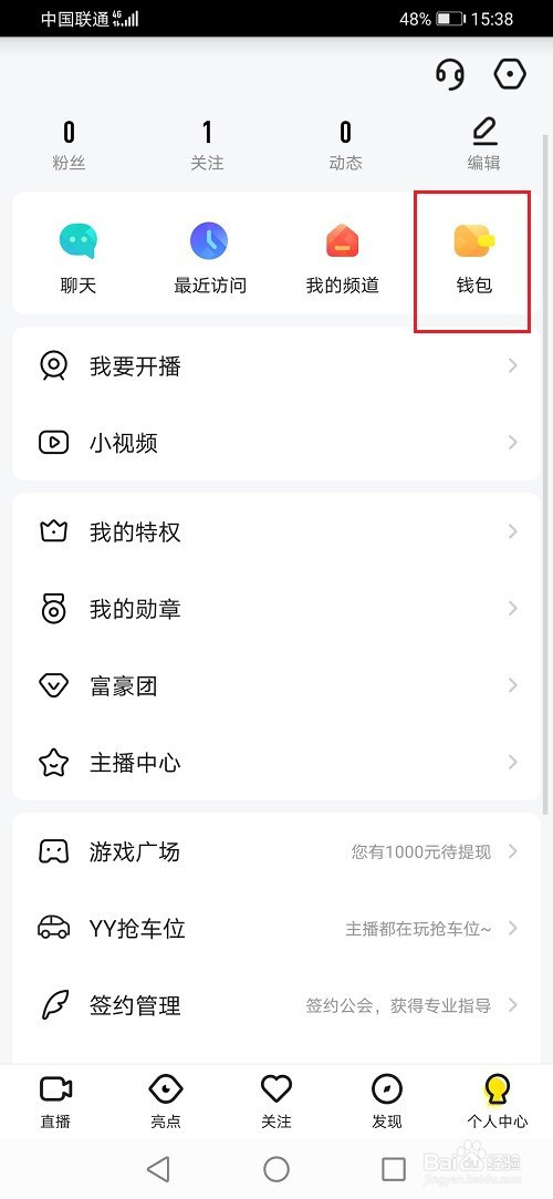 第二步下面来看一下获得的活动红钻,点击钱包