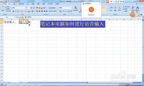 点击搜狗输入法上东西条上的语音输入——然后对着笔记本的麦克风措辞——点击完当作就会主动输入到单位格中。