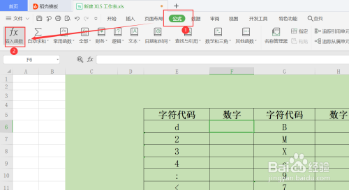 第二步,选中F6单位格,然后点击顶部东西栏公式,插入函数功能;