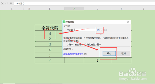 4、点击确定按钮,获取成果,完当作字符代码转换数字操作。