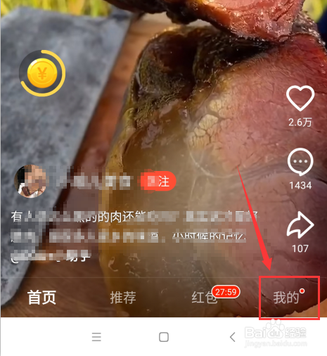 进入火山极速版首页后,点击右下角“我的”。见下图