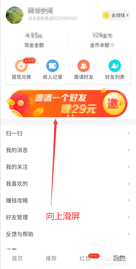 打开“我的”页面后,标的目的上滑动屏幕直到滑到底部。见下图