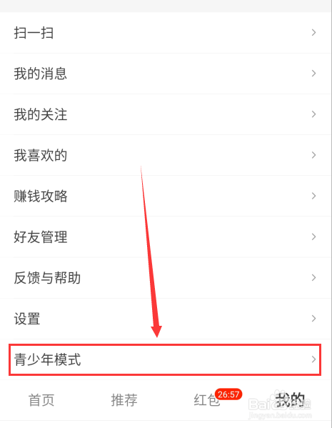 【4】接着,点击“青少年模式”地点行肆意位置。