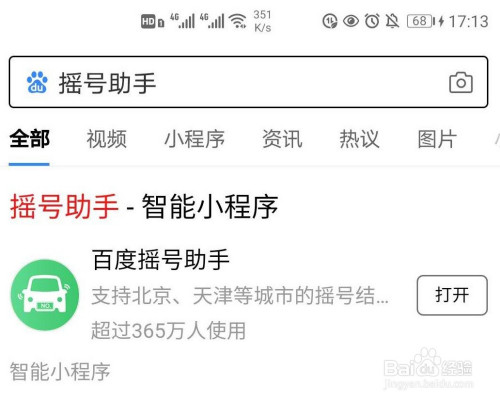 打开【手机百度客户端】,搜刮进入到【摇号助手】。