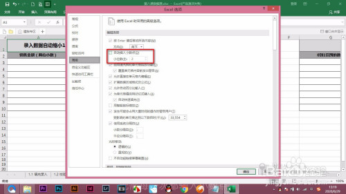 3.找到主动插入小数点的选项,设置好小数点的位数,将这个对勾勾选上,然后点击确定。