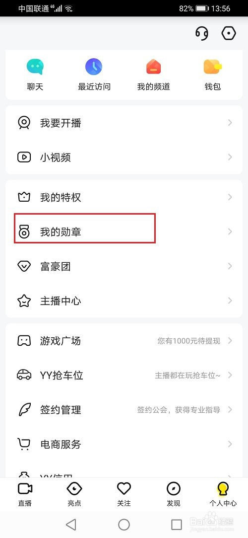 第一步打开yy,进去小我中间之后,点击我的勋章