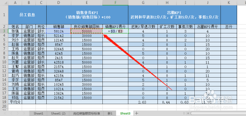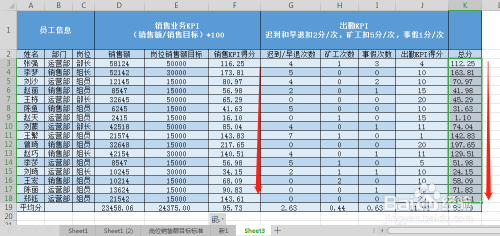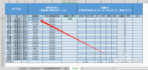 选中发卖KPI得分的单位格。