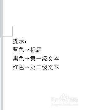 如图所示,按照提醒要将蓝色设置为题目,黑色设计为第1级文本,红色设置为第2级文本。