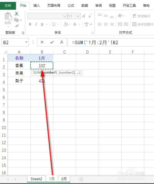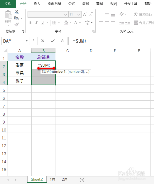 然后再点击第一个要乞降的单位格(B2),具体如图所示: