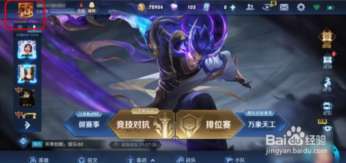 2.首先打开【王者荣耀】,点击左上角头像,进入【小我中间】。