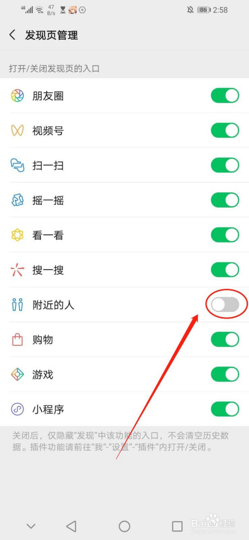 返回“发现”界面,发现已经没有了四周的人进口,如图
