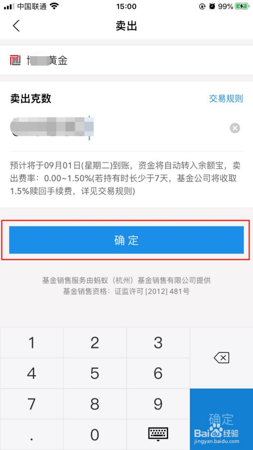 在“卖出”的界面中,输入要卖出的克数,点击“确定”按钮。