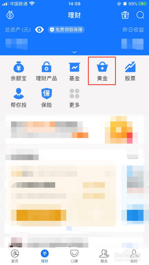 在“理财”界面中,点击“黄金”图标。