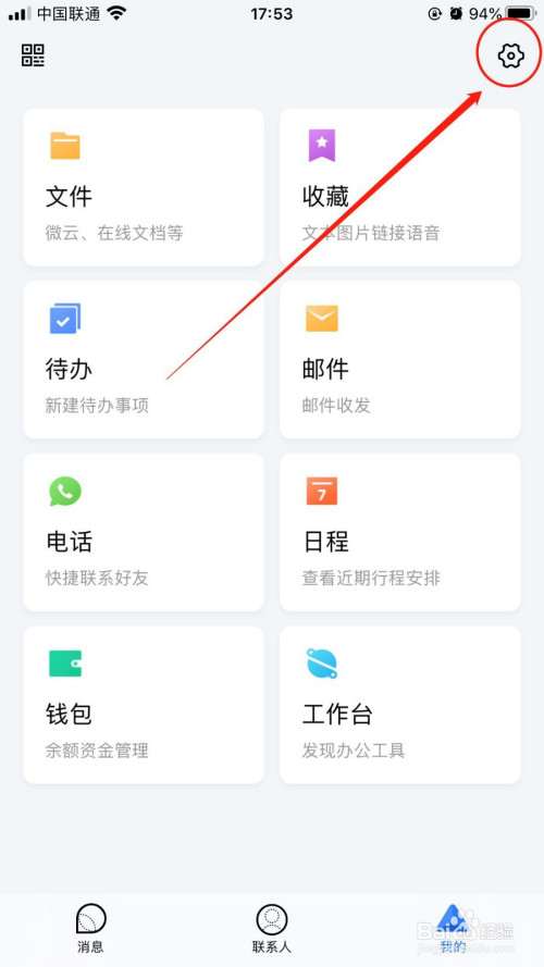 在“我的”界面中,点击右上方的“设置”图标。