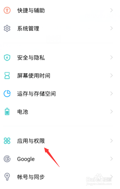 进入设置中间点击【应用与权限】选项。