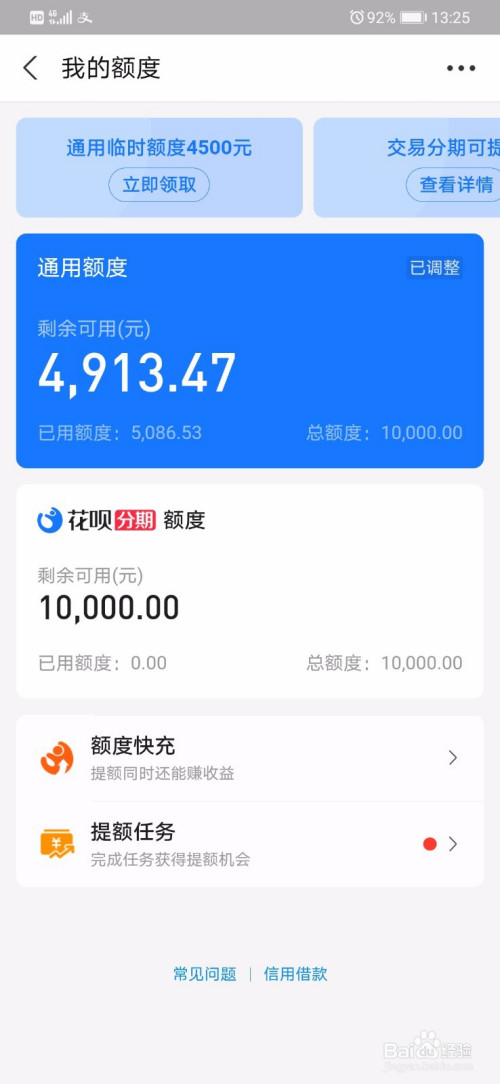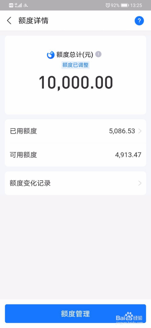 这样,我们就回来到这个界面,此中有一个调整额度,我们点击进入。