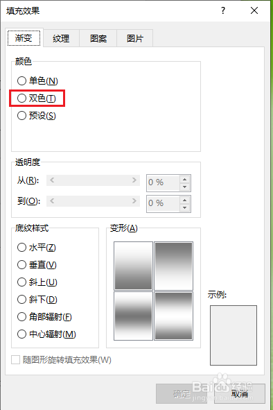 ●底纹样式选择“程度”;
