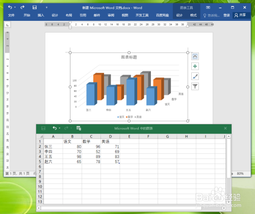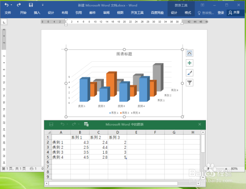 ●系统主动打开Excel工作表,在Excel中我们可以输入和点窜图表的数据。