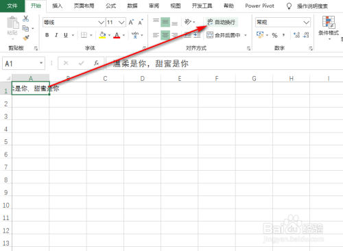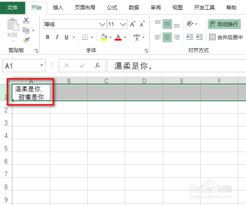 选中步调1中的单位格,点击“起头”选项卡下的“主动换行”,具体如图所示: