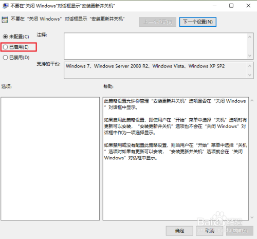 双击【不要在”封闭windows“对话框显示”安装更新并关机“】。