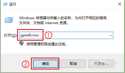 输入“gpedit.msc”,点击【确定】,打开当地组策略。