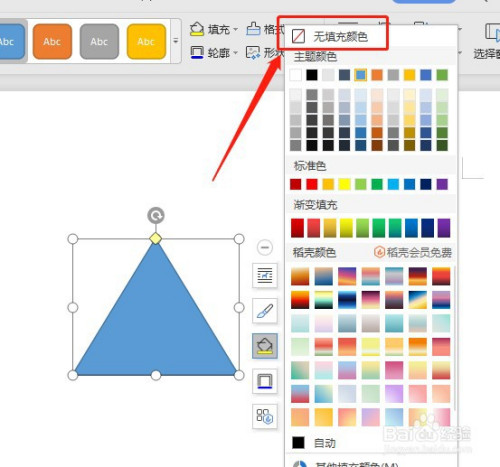 在文档空白处按住鼠标左键不放,拉动鼠标,这样就会插入一个等腰三角形